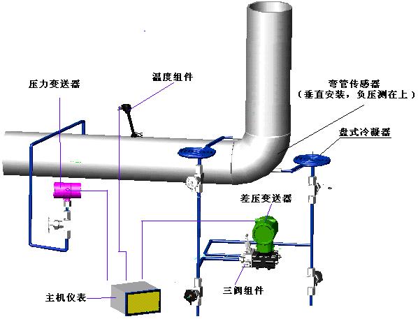1. 測量煤氣、空氣等(deng)彎管流量計系統(tong)構成