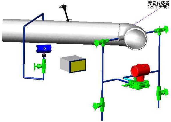 彎管流量計的(de)一次傳感元件——彎(wan)管傳感器依安裝(zhuāng)管線上的不同分(fen)爲如下三種: