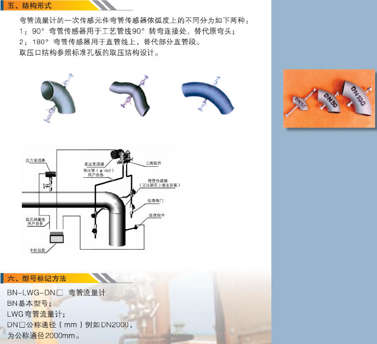 ? &90°彎管(guan)傳感器——用于工藝(yi)管線90°轉彎連接處(chu),替代原彎頭