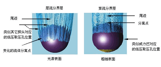 根據空(kong)氣動力學原理(lǐ)設計的前粗糙(cāo)表面層流邊💰界(jie)層和紊💃🏻流邊界(jiè)層的比較