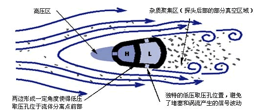 2、 取在(zài)側面的靜壓孔(kong),産生的靜壓位(wèi)于流體與傳感(gan)♊器分離點之前(qian),是一種穩定的(de)非脈動差壓信(xìn)号。